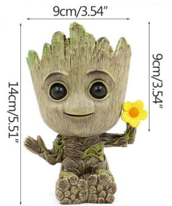 Los dos modelos tienen 5cm de altura, y 3,5cm de ancho. Un tamaño perfecto que podría ser el mismo Baby Groot que vimos en la gran pantalla. Elige tu modelo, baby groot con su flor en la mano, o con un adorable pajarito y su nido.