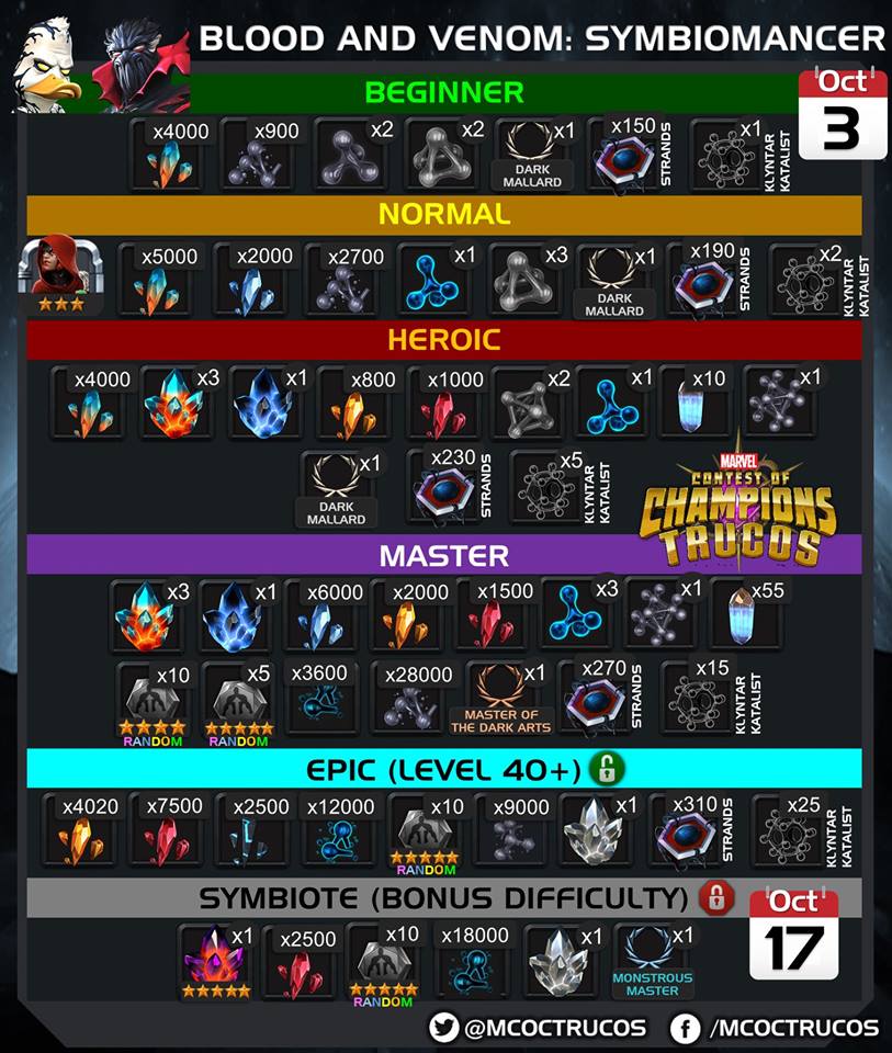 • Sangre y veneno: Simbiomante: Super mision que nos encontramos cada mes y estará disponible  des del 3 de octubre hasta el 7 de noviembre.
